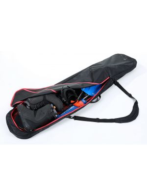 Snowboardový obal z pevného polyesteru vyztužený v namáhaných místech s odepínacím popruhem přes rameno. Pojme kompletní snowboardový set včetně bot, helmy, páteřáku apod. Navíc obsahuje vnější zipovou kapsu na drobnosti. Neobsahuje polstrování.